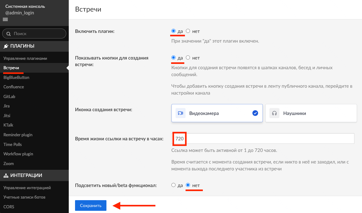 Достаточно включить плагин в системной консоли(Plugins -> Встречи) и выставить несколько параметров.